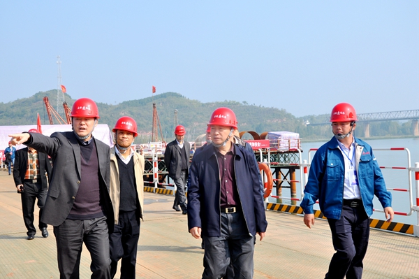 10月19日,集團公司黨委書記、董事長趙時運到安徽路橋公司濟洛西黃河特大橋項目調研,高度評價黃河特大橋項目的各項工作。集團公司副總經理許克順,紀委書記宋志華,海外公司總經理陳修翔,辦公室副主任劉春雷,公司黨委書記、董事長、總經理孫學軍陪同調研。