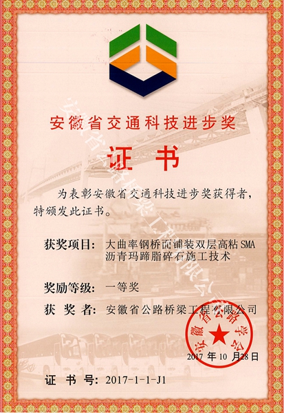 近年來,公司積極實施創(chuàng)新驅(qū)動發(fā)展戰(zhàn)略,充分依托省級技術(shù)中心,重點立足新設備、新材料、新工藝運用,大力推進科技創(chuàng)新,持續(xù)加強科技成果轉(zhuǎn)化,以科技創(chuàng)新助推企業(yè)轉(zhuǎn)型發(fā)展、跨越發(fā)展、高效發(fā)展,取得了良好成績。此次兩項成果榮獲省公路學會交通科技進步獎一等獎,充分體現(xiàn)了在公路工程特級資質(zhì)新發(fā)展平臺上公司科技創(chuàng)新實力的進一步增強。