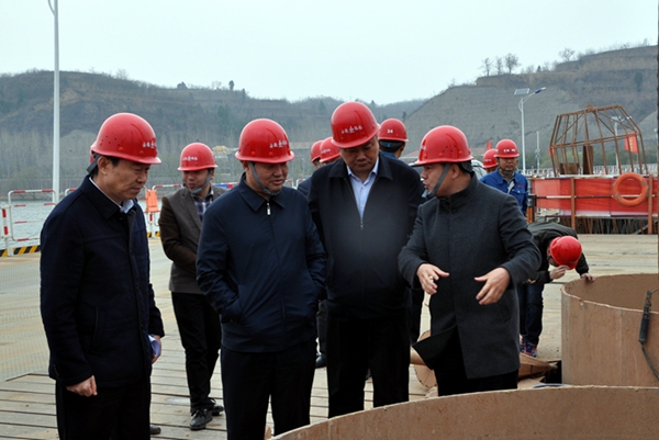 3月15日下午,濟源市副市長李拴根一行在市交通運輸局局長安東利、濟洛西高速公路建設有限公司董事長楊新民的陪同下,蒞臨公司承建的濟洛西高速黃河特大橋項目調研指導工作。