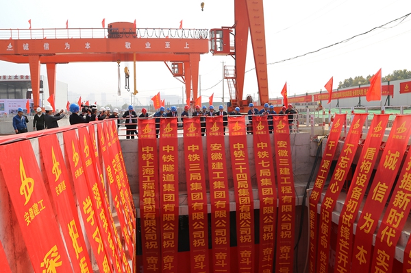 陽春三月生機勃發,奮斗一號掘進始發。3月31日上午,公司首臺盾構機“奮斗一號”在軌道交通4號線1標長寧大道站順利始發,標志著合肥軌道交通4號線正式進入盾構施工階段。合肥市軌道公司總經理羅斌,安徽建工集團副總經理王厚良,公司董事長、黨委書記、總經理孫學軍等領導和參建單位代表出席始發儀式。10時16分,羅斌宣布“奮斗一號”正式始發。儀式結束后,與會領導與專家深入始發現場、管片存放區檢查指導。