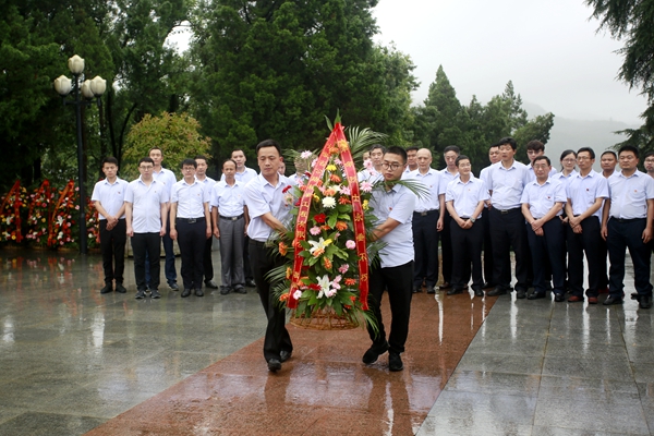 7月6日,綿綿細雨中金寨縣紅軍廣場,肅穆中更顯一份哀思。在此開展主題黨日活動的道路分公司黨總支,公司機關第二、第四黨支部,路面公司黨總支向革命烈士虔誠的敬獻了花籃。在革命烈士紀念塔的見證下,100多名黨員舉起右手拳頭,對著鮮紅的黨旗,一起再次重溫入黨誓詞。