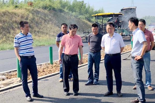 省交控集團總經理錢東升蒞臨廣寧高速路面項目檢查指導工作 發布時間:2018年08月10日 來源:路面公司 發布人: 作者:圖/文 褚祥 葛偉 瀏覽:3521次 8月8日,省交控集團總經理錢東升、建管部部長蘇新國一行蒞臨廣寧高速路面項目檢查指導工作,廣寧高速項目辦主任方昱陪同。 錢東升一行深入瀝青施工現場,對正在進行的瀝青攤鋪施工進行了檢查指導。錢東升要求項目部要統籌應對此輪材料價格上行壓力,多措并舉加快瀝青料的儲備,積極搶抓有利天氣進一步加快施工進度;同時要做好防暑降溫工作,確保廣寧高速按既定時間節點順利通車。