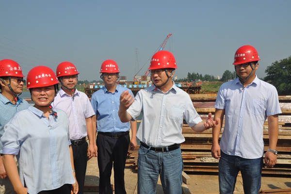 6月11日上午,蕪湖縣委書記黃維群、副縣長陳亨俊一行到蕪湖S354青弋江橋項目調研指導工作,縣交通運輸局局長許小兵等陪同。