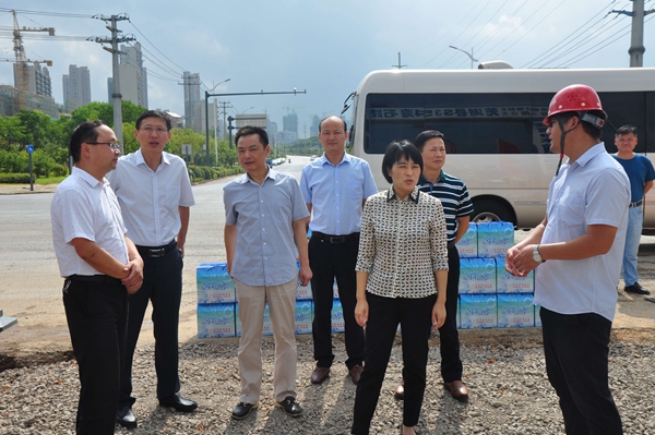 蕪湖縣長韋秀芳一行到S354項目開展“送清涼”慰問 發布時間:2019年08月12日 來源:市政分公司 發布人: 作者:文/孫亞南 圖/杜浩偉 瀏覽:3501次 8月9日上午,蕪湖縣委副書記、縣長韋秀芳一行到S354青弋江橋項目開展“送清涼”慰問活動,縣交通運輸局局長許小兵等陪同。 在施工現場,韋秀芳聽取了項目負責人關于施工進展和防暑降溫措施落實等方面工作匯報,對高溫天氣下堅守崗位的一線建設者表示感謝。韋秀芳一行送來了礦泉水等防暑降溫用品,叮囑大家要勞逸結合,時刻注意身體健康,項目要科學合理安排施工,確保工作人員在炎熱夏季作業安全。