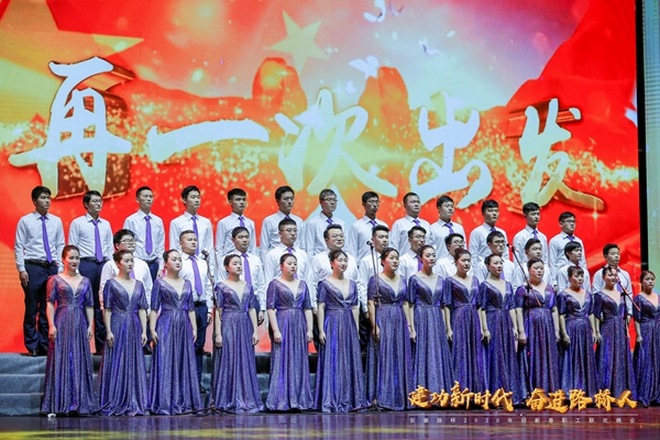 聯歡會在開場舞《家》中拉開序幕,人屏互動表演《祖國新時代 路橋新征程》全面回顧了公司成立35年來取得的驕人成績;古典舞《采薇》表現了公司“家文化”品牌豐富內涵;語言類節目《談判專家》、《歡聲笑語》展現了青年職工積極向上的精神風貌;朗誦《跨越》抒發了一代代路橋人揮灑汗水、逐夢未來的豪邁和勇氣;戲曲聯唱《十八相送 梨花頌 夫妻觀燈》體現對民族傳統文化的傳承;歌曲《紅旗飄飄》唱出了全體職工對祖國的無限熱愛和不斷奮進的信心與決心。在文工團大合唱《再一次出發》《我和我的祖國》中,聯歡會落下帷幕。