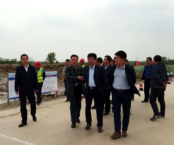 4月27日,淮南市委常委、壽縣縣委書記胡春華一行到公司承建的壽縣新橋國際產業園道路擴展項目調研指導工作。