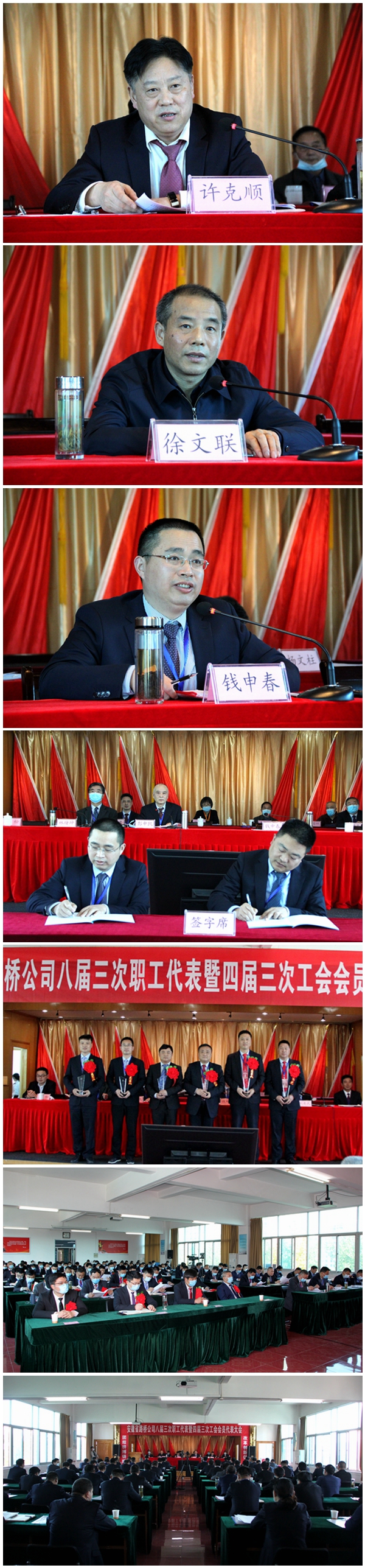 4月28日,公司八屆三次職工代表暨四屆三次工會會員代表大會在肥勝利召開,80多名職工代表肩負著兩千多名路橋職工的殷切期盼齊聚一堂,共商公司改革發展大計。股份公司黨委副書記、總經理許克順出席會議并講話,股份公司黨委副書記、控股公司黨委工作部主任徐文聯到會組織開展了領導班子民主測評和優秀年輕干部推薦工作。