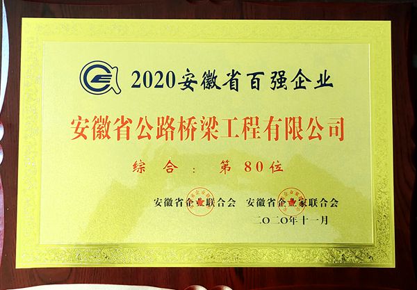 (2020年安徽省百強(qiáng)企業(yè)排名80位)