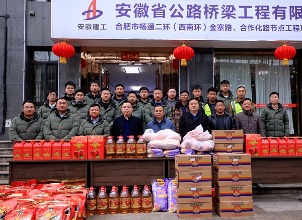 2月11日,公司黨委副書記、總經理錢申春到暢通二環(西南環)項目看望慰問春節期間依然奮戰在一線的全體管理人員及勞務隊伍,并送上了水果、糧油等慰問品。