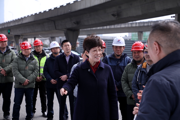 凌云來到施工現場,與參建人員一一握手寒暄并送上節日祝福。在聽取了項目概況、施工進展、施工亮點和春節期間施工目標及各項保障工作后,凌云對春節期間項目全體施工人員放棄與家人團聚,依舊堅守崗位致以崇高敬意,并對項目取得的各項成績給予充分肯定。她強調,要搶抓春節期間施工優勢,保持大干勢頭,加快施工進度,保障施工安全,盡早還路與民。