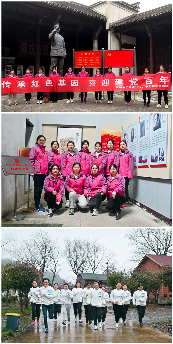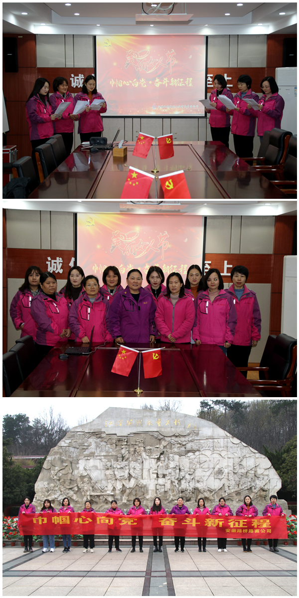 道路分公司開展以“傳承紅色基因 喜迎建黨百年”為主題的慶三八國際勞動婦女節主題黨建活動。女職工們懷著崇敬的心情來到涇縣云嶺新四軍軍部舊址紀念館,通過展館內珍貴圖文及實物資料,了解革命烈士們可歌可泣的英雄事跡、革命歷程和崇高革命精神。在展館外,女職工在秀美山川間放聲齊唱《唱支山歌給黨聽》,表達對黨和祖國的熱愛之情。活動最后,還組織了“青春助力十四五 綠色環保健康行”為主題的健康跑活動。