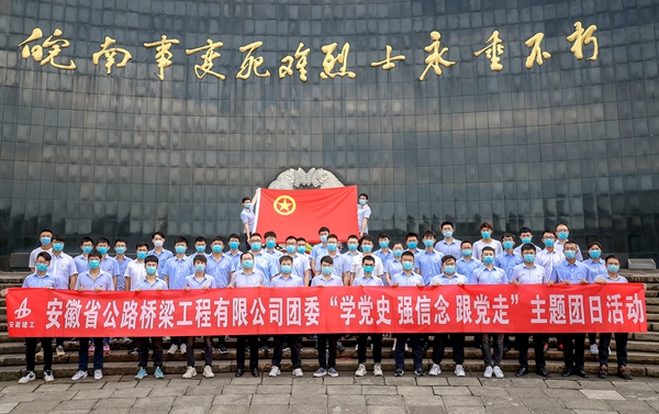 5月14至15日,公司團委組織開展“學黨史、強信念、跟黨走”主題團日活動,引導團員青年加強百年黨史學習,傳承紅色基因,汲取實踐力量,為譜寫安徽路橋美好新畫卷、奮力打造“千億安徽建工”貢獻青春智慧,以優異成績迎接建黨100周年。