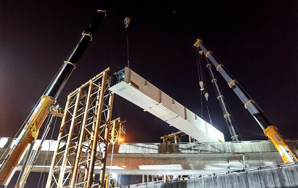 暢通南二環項目順利推進主線橋鋼箱梁架設