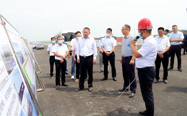 孔祥永來到渦河五橋特大橋施工現場,通過實地察看、聽取匯報、現場問詢等方式,詳細了解施工情況,并對項目進展綜合管理給予了高度肯定。他強調,要克服汛期及疫情影響,搶抓時機,加快推進項目建設,相關單位和部門要加強統籌協調,切實營造良好的建設環境。