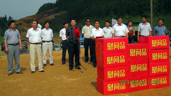 安徽省高速公路總公司副總經理、省高等級公路建設指揮部副指揮長李云貴,省高速公路建設處副處長、黃祁高速公路項目辦公室主任楊朝暉率慰問組,冒著炎炎酷暑深入黃祁高速路基工程10標施工現場召開黃祁高速項目慰問大會,給黃祁項目員工送來了“清涼”,并親手將慰問品和慰問金發放到一線工作人員的手中。