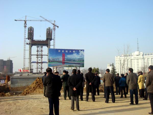 湯書記一行來到南岸主橋現場,邊看邊聽取了業主責任人曹德林主任關于當前施工情況的介紹。市領導對我部堅持高起點、高標準、高質量、高效率的施工,和當前取得的建設成績表示了滿意,并希望我部再接再厲、再創佳績。我部表示將繼續以飽滿的熱情,一絲不茍的責任心、一如既往的恒心把各項工作做好,絕不辜負市領導和全市人民的期望。