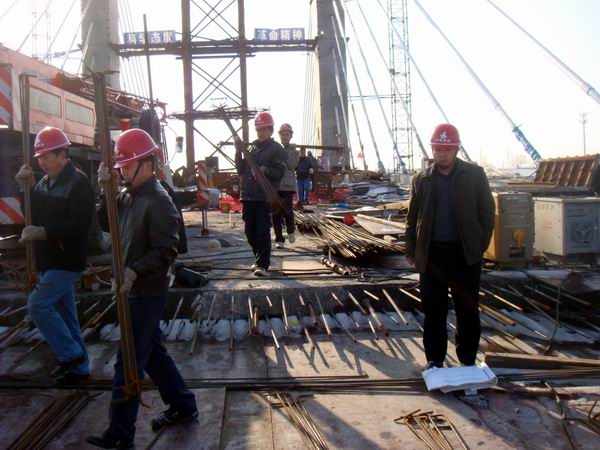 根據年前項目部會議計劃安排,節前應完成主跨掛籃懸澆塊第十節段的澆筑,然而由于年底大雪天氣影響,致使原計劃有所推遲。為搶回工期,正月初六項目部員工便全部到崗,立即展開謀劃,組織復工。由于作業隊外地工人過年回家未能及時全部到崗,項目部人員在江仲明經理的率領下,親自下工地抬鋼筋、穿波紋管、綁扎鋼筋,干起了體力活,補上了未到崗工人的缺,使施工速度明顯加快。21日晚,在大家的共同努力下,主跨第十節段混凝土順利澆筑完畢。在節后的六安市建筑工地中我部率先完成了混凝土澆筑工作,在虎年的新春里開了一個好頭。六安市《大別山晨刊》報以《部分工人未到崗技術人員頂上去——新春伊始淠望路大橋搶抓工期》為題在頭版對我部的事跡進行了專題報道。