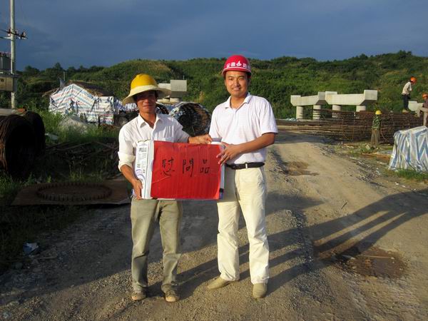 入夏以來,黃祁高速公路建設(shè)沿線地區(qū)持續(xù)高溫,廣大項目員工冒著高溫酷暑始終堅守在一線,為加快施工進(jìn)度而不懈努力。2010年7月18日下午,我部項目經(jīng)理黃華及項目部主要管理人員深入施工現(xiàn)場,慰問廣大員工,檢查各工區(qū)施工隊伍防暑降溫工作的開展情況,并將防暑降溫用品發(fā)放到各工區(qū)施工隊。