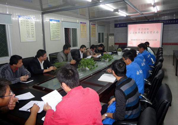 項目總工王守武擔任本次本次活動的主持人。王總工首先全體項目員工重點強調了本次規章制度學習會議的重要性,隨后安排主辦會計高偉、項目辦公室陳凱等幾位同志對公司財務、人力資源、辦公室等部門的職能逐條進行介紹,并對不同職能部門的管理制度作深入細致的闡述和解釋。