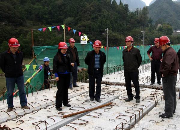 黃主席一行在項目經理王遠勝、項目黨支部書記邵建新、總工吳昊的陪同下深入各工區、施工一線了解我部一工區梁板預制、鋼筋加工和橋梁架設情況,二工區立柱施工情況和三工區梁場恢復生產的情況,并聽取項目經理王遠勝關于我部水毀及災后恢復生產的工作匯報。