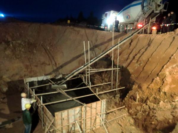 在澆筑過程中,項目部合理安排、精心組織,澆筑作業人員輪流就餐,堅守崗位。當日晚9時許,近5個小時的澆筑工作順利結束,這標志著我標段鋼筋砼蓋板通道第一次澆筑作業圓滿結束。