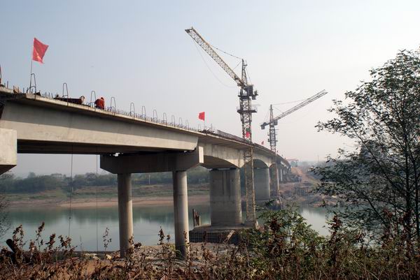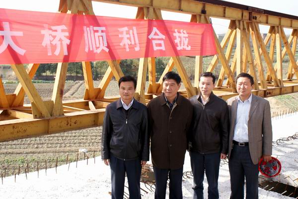 青弋江大橋全長454米,凈寬11米,結構形式為30×10+70+42×2的簡支箱梁與現澆懸臂橋。該工程于2007年開工,前期由于施工條件的限制和其它不利因素,工程進展頗不順利。后來在公司領導的大力支持下,全體施工人員上下合力,積極創造條件進行施工,全橋終于順利合龍。盛總在合龍現場指出,雖然大橋已順利合龍貫通,但后期任務還相當艱巨,橋面、護欄、橋頭搭板和護坡等都需要抓緊施工,在保證質量、保證安全的情況下,組織力量加快施工進度,確保實現元月通車的目標。