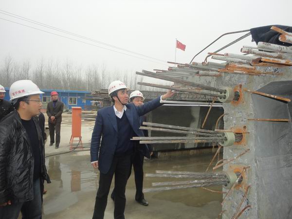 視察過程中,何站長對我部預制梁場的施工質量、工藝給予了充分的肯定和贊揚,通過察看安全警示牌、詢問現(xiàn)場安全員,對我部安全工作的全面細致也豎起了大拇指,并對我安徽省公路橋梁工程公司表達了由衷的贊許。在肯定我們的工作成績的同時,何站長也要求我們要繼承和發(fā)揚安徽省路橋公司的優(yōu)良傳統(tǒng),細化工作、進一步提高工程質量。