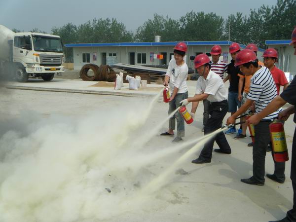 鳳陽縣消防支隊(duì)派出業(yè)務(wù)骨干進(jìn)行培訓(xùn)和現(xiàn)場(chǎng)指導(dǎo)演練,重點(diǎn)對(duì)施工現(xiàn)場(chǎng)安全的隱患點(diǎn)做了詳細(xì)分析,對(duì)消防滅火器材的種類、型號(hào)、使用方法進(jìn)行了講解和現(xiàn)場(chǎng)指導(dǎo)。本次消防演練由技術(shù)指揮組、搶救組組成。參加培訓(xùn)人員在掌握基本常識(shí)基礎(chǔ)上對(duì)施工現(xiàn)場(chǎng)所配備的干粉滅火器進(jìn)行實(shí)際操作,進(jìn)行滅火演練。
