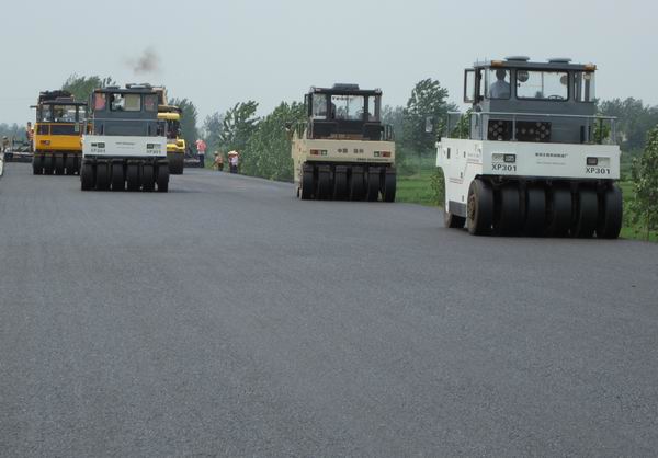 周六路面03標下面層試驗段順利攤鋪