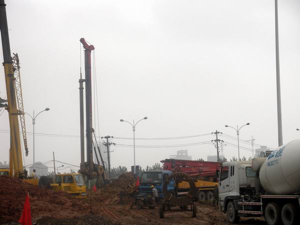 目前,項(xiàng)目部已具備辦公條件,主要管理人員已基本到位,道排、橋梁、樁基、擋墻等施工隊(duì)伍已進(jìn)場(chǎng)施工,并于7月5日,完成首根樁基的澆筑。項(xiàng)目部在人員不足,桿管線、污水燃?xì)夤艿厘e(cuò)綜復(fù)雜等不利因素的影響下,利用現(xiàn)有條件充分挖掘工作面。截止7月17日,已完成駐地建設(shè),懷寧路下穿橋支護(hù)咬合樁33根、下穿橋樁基28根,翡翠路上跨橋鉆孔樁22根,棄土方14600方、溝槽開(kāi)挖2840方,回填2180方,雨污水管道埋設(shè)約730米,累計(jì)完成產(chǎn)值約1000萬(wàn)元。