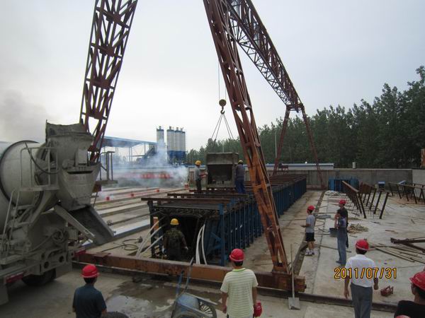 徐明11標(biāo)第一片箱梁預(yù)制成功 發(fā)布時間:2011年08月02日 來源:徐明11標(biāo) 發(fā)布人: 作者:李發(fā)林 瀏覽:3334次 8月1日凌晨3點,在項目部的精心組織和全體參建人員的共同努力下,徐明高速路11標(biāo)第一片箱梁預(yù)制成功,標(biāo)志著該項目部大規(guī)模預(yù)制箱梁的序幕已經(jīng)拉開。