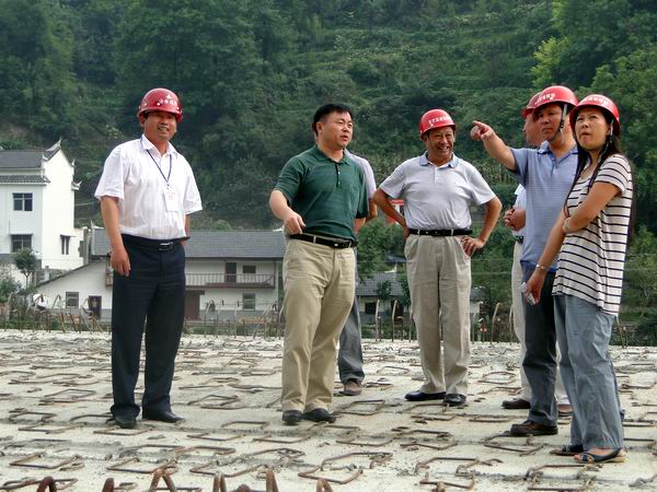 考核小組沿著雙幅貫通的皂角樹大橋向巴東方向經路基、秦家河1號橋、王家溝大橋、秦家河2號橋、馬家河1號橋分別檢查了防撞墻施工、路基平整、邊坡防護、古銀杏樹保護、橋面連接施工、橋面鋪裝施工現場的安全、質量和環保工作。