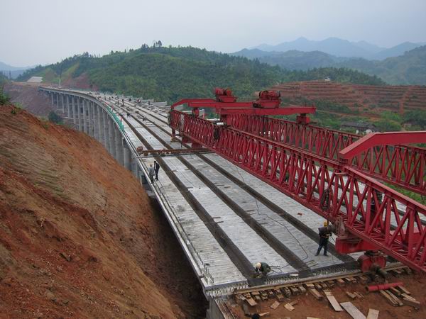 今年贛南雨季較之往年稍微提前,三月雨水繁多,給江口大橋的梁板安裝帶來了很大影響。作為開年施工建設(shè)中的控制性施工點,我部積極采取多種措施,在確保施工安全和工程質(zhì)量的前提下,大力推進梁板安裝施工進度。項目部成立以項目經(jīng)理為組長的梁板安裝工作組,搶抓有利天氣開展安裝工作,于2012326日創(chuàng)造全線單天安裝1030T梁的記錄(包括架橋機過孔),扎扎實實的把工作落在實處,為我部完成江口大橋的半幅貫通奠定了堅實基礎(chǔ)。