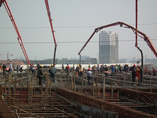 在澆筑過程中,項目部技術員全部上陣,并一直堅持到結束,休息和三餐全部在澆筑現場解決。安全管理人員也全部到場,5名安全員分別把守著高壓線四端,確保澆筑安全距離,防止輸送泵車的大臂觸電。項目部和監理部主要負責人也在場檢查、督導澆筑質量和安全。
