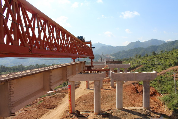 昌寧高速C5標(biāo)完成龍坊高架第一片40米T梁架設(shè) 發(fā)布時(shí)間:2014年09月18日 來源:昌寧高速C5標(biāo) 發(fā)布人: 作者:王振堂 瀏覽:2801次 9月18日上午9時(shí)18分,昌寧高速公路C5標(biāo)龍坊高架第一片40米T梁順利架設(shè)成功,標(biāo)志著作為全線控制性工程的龍坊高架橋進(jìn)入了上部施工階段,極大地提振了項(xiàng)目部全體員工和參建隊(duì)伍的戰(zhàn)斗精神。